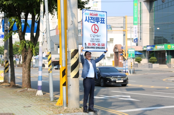 ▲ 윤병태 나주시장이 영산포 삼거리에서 1인 사전투표 독려 캠페인을 진행했다 |