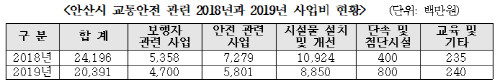 한편 <안산시 교통안전 관련 2019년 사업비>는 203억 9100만원으로 지난 2018년 241억 9600만원 보다 오히려 38억원이 적었다. 교통안전 사업은 보행자와 안전 관련 사업, 시설물 설치 및 개선, 단속 및 첨단시설 구축, 안전교육 사업 등에 해당된다.