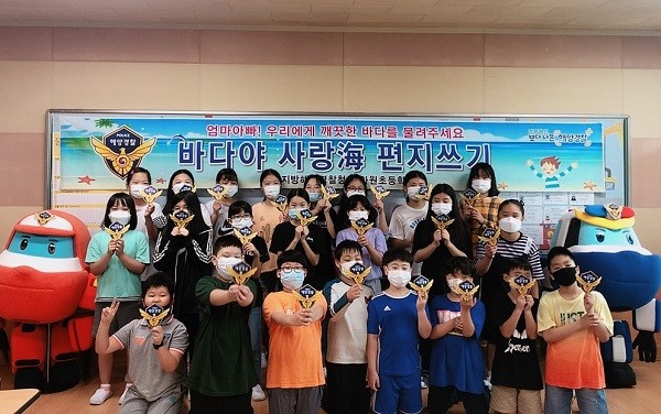 서해지방해양경찰청(청장 김도준)이 어린이들의 해양환경에 대한 관심을 제고하고 해양쓰레기 문제의 심각성을 알리기 위한‘바다야 사랑海 편지쓰기’행사를 22일 해남 화원초등학교에서 개최했다.