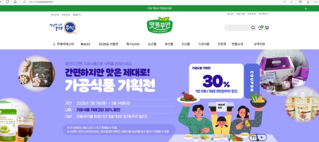 무안군 농특산물 온라인 쇼핑몰 ‘맛뜰무안몰’은 가공식품 할인 기획전과 양파·마늘 소비촉진 기획전을 오는 14일까지 진행한다.
