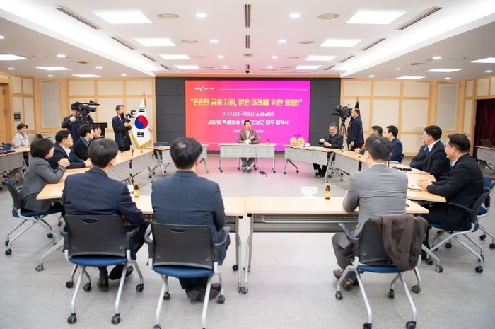 구미시는 2월 18일 지역 내 금융기관, 경북신용보증재단과 함께 ‘소상공인 특례보증 사업’ 출연협약을 체결했다.