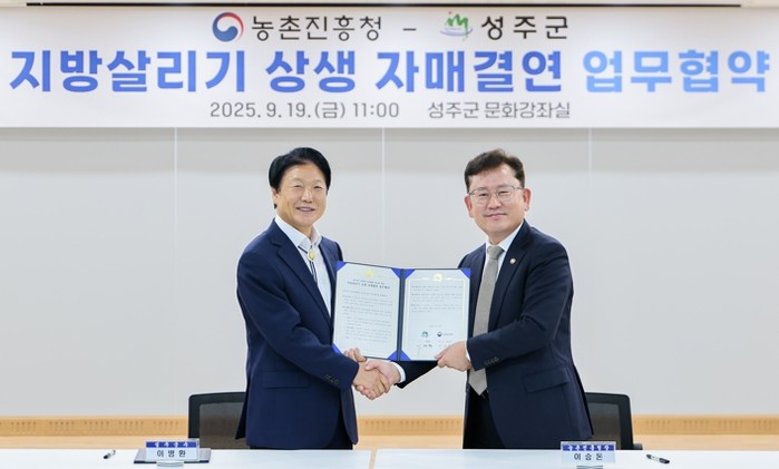 이병환 성주군수와 이승돈 농촌진흥청장은 9월 19일 오전 성주군청에서 상생발전 도모와 상호 공동협력을 위한 협약서에 서명했다.