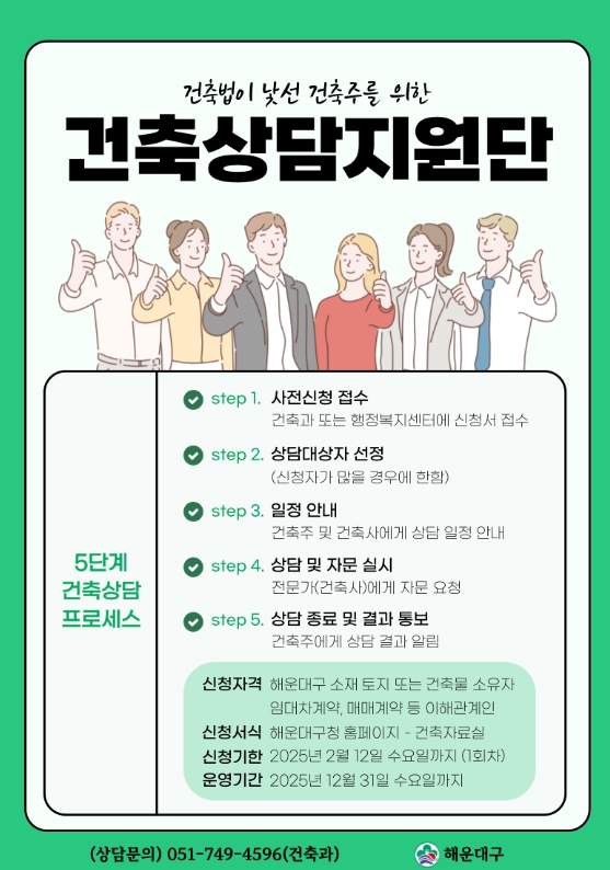해운대구는 건축법이 낯선 건축주를 위한 ‘건축상담지원단’을 운영한다.