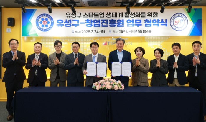대전 유성구와 창업진흥원이 24일 대전 팁스타운에서 업무협약을 체결하고 지역 스타트업 생태계 활성화에 나선다.