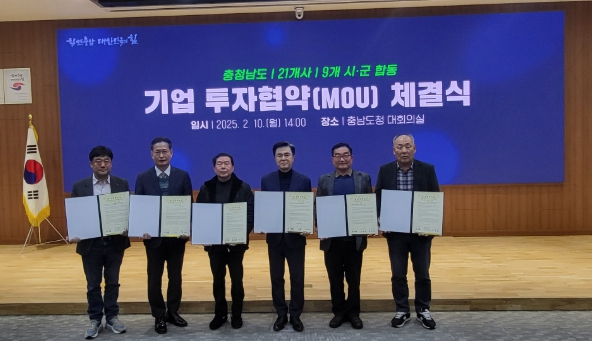 이날 협약식에는 김태흠 충남도지사, 윤여권 청양 부군수, 천안·보령·아산시 등 9개 지역 시장·군수가 참석했으며, ‘보령우유㈜’ 이수호 대표이사, ‘옐로우팜㈜’ 오관수 대표이사, ‘㈜우아한 한끼’ 김순찬 대표이사, ‘함지박㈜’ 장창순 대표이사 등 투자기업 대표와 정산2농공단지 시행사인 ‘학암산업개발’ 전영철 대표이사도 함께 자리했다.
