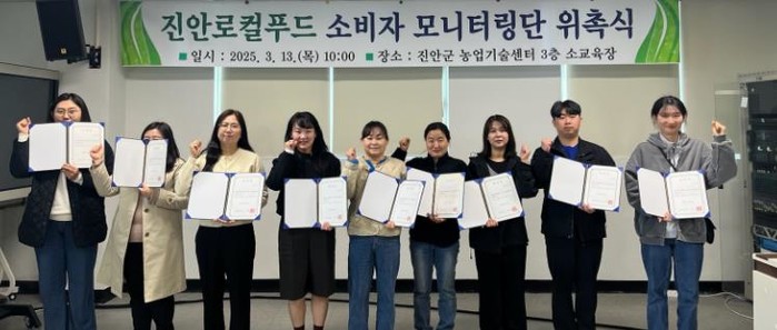 진안군은 13일 농업기술센터 3층 소교육장에서 로컬푸드의 신뢰도를 높이고 안전한 먹거리 공급을 강화하기 위해 ‘진안군 로컬푸드 소비자 모니터링단’ 위촉식을 개최했다.