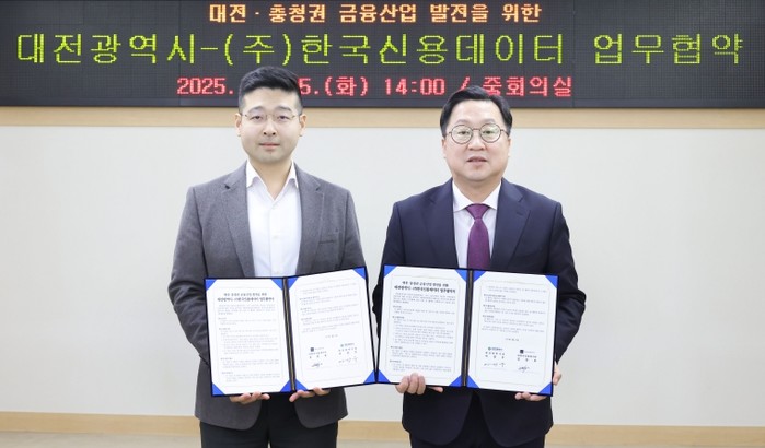 대전시와 한국신용데이터(KCD)는 25일 대전시청에서 제4인터넷전문은행인 ‘한국소호은행’ 설립을 위한 업무협약을 체결했다.