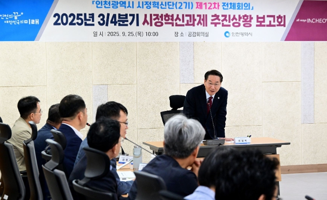 인천광역시는 9월 25일 시청 공감회의실에서 ‘2025년 3/4분기 시정혁신과제 추진상황 보고회’를 개최했다고 밝혔다.