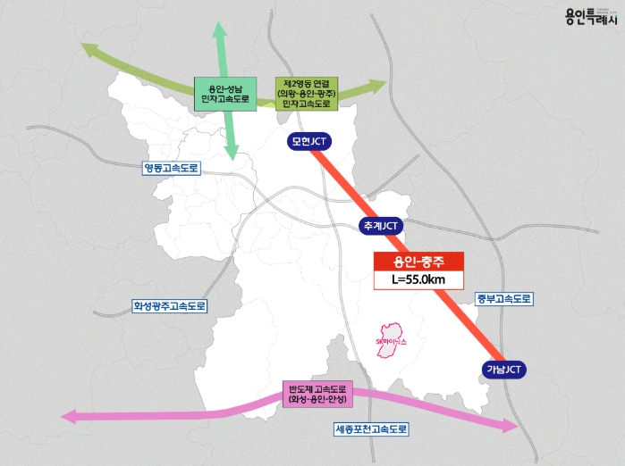 이 도로는 ▲세종포천고속도로(모현JCT) ▲영동고속도로(추계JCT) ▲중부고속도로(가남JCT) ▲평택제천고속도로(서충주JCT)와 연결돼 용인특례시 처인구 원삼면에 SK하이닉스가 122조원을 투자해 조성 중인 ‘용인 반도체클러스터 일반산업단지’로의 접근성과, SK하이닉스 이천사업장과의 연계성도 대폭 높이는 역할을 할 것으로 기대된다.