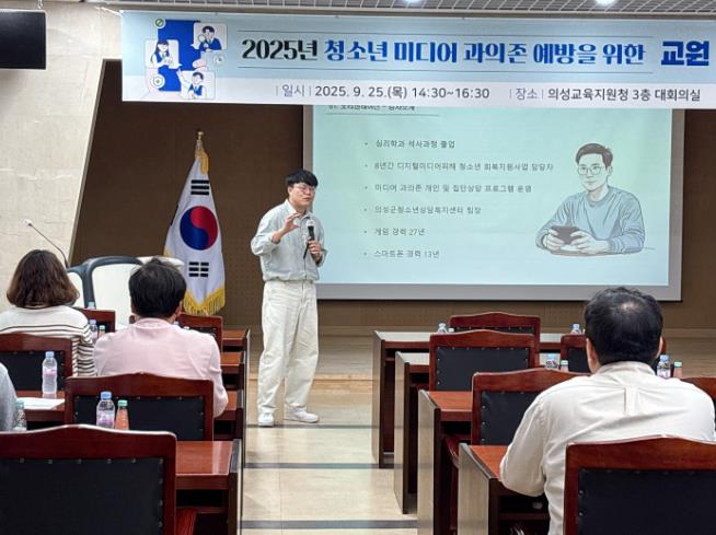 경상북도의성교육지원청은 9월 25일 의성교육지원청 대회의실에서 '청소년 미디어 과의존 예방을 위한 교원 및 학부모 역량 강화 연수'를 개최했다.