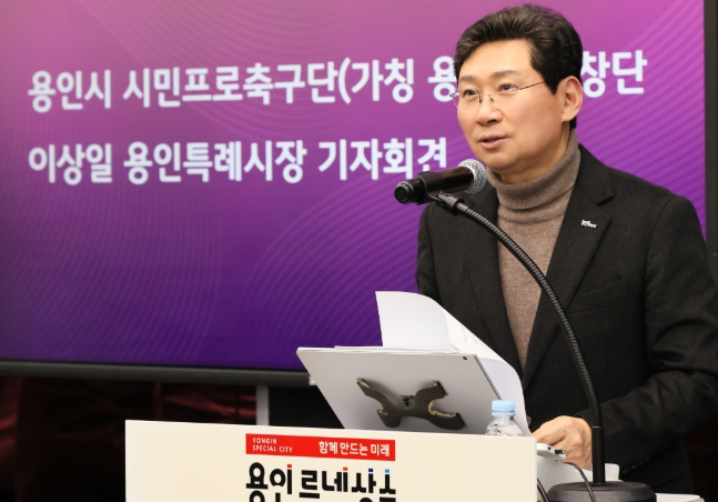 이상일 용인특례시장은 6일 시청 컨벤션홀에서 기자회견을 열어 한국프로축구연맹(K리그) 가입과 K리그 참가를 위해 ‘용인시 시민프로축구단’(가칭 용인FC)을 창단한다고 선언했다.