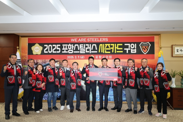 포항시의회의원들이‘2025 포항스틸러스 시즌카드’를 구입하며 올 시즌 포항스틸러스의 선전을 기원했다.