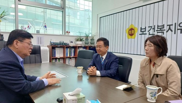 경기도의회 보건복지위원회 이선구 위원장(더불어민주당, 부천2)은 4월 17일 위원장실에서 이용빈 경기복지재단 대표이사와 임숙자 기획조정실장의 예방을 받고, 보건복지 분야 정책역량 강화를 위한 정담회를 가졌다.