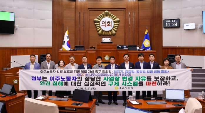 이번 건의안을 통해 나주시의회는 대한민국 산업 현장의 필수적인 노동력으로 자리 잡은 이주노동자들이 여전히 법과 제도의 사각지대에서 인권 침해를 겪고 있는 현실에 대해정부의 책임 있는 자세와 구조적 개혁을 촉구했다.
