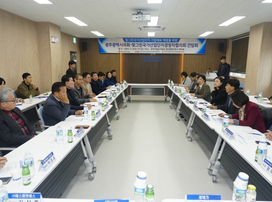 이날 간담회에는 신수정 의장, 박필순 산업건설위원장, 김용임 의원, 박수기 의원, 임미란 의원, 최지현 환경복지위원장, 빛그린국가산단 입주기업협의회 양오열 회장 및 회원, 한국산업단지공단, 광주광역시, 광주경제자유구역청 등 30여명이 참석했다.