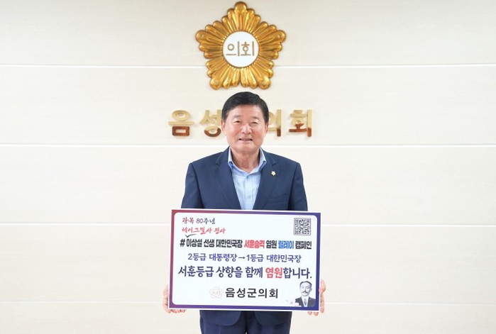 김영호 음성군의회 의장은 지난 7월 16일 독립운동가 보재 이상설 선생의 숭고한 업적을 기리고 서훈(敍勳) 등급 승격에 대한 사회적 공감대를 확산시키기 위해 ‘이상설 선생 서훈 승격 염원 릴레이 캠페인’에 동참했다.