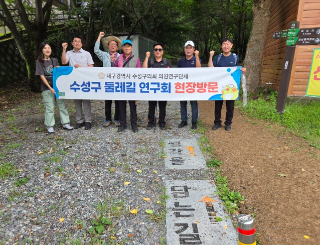대구 수성구의회 의원연구단체 ‘수성구 둘레길 연구회’가 수성구 대표 둘레길인 ‘생각을 담는 길’ 진밭골길(6코스)을 찾아 현장 점검에 나서며 둘레길 활용 방안을 모색했다.