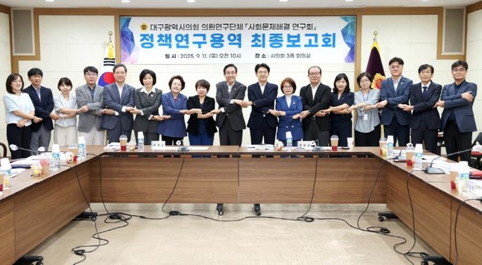 대구광역시의회 의원연구단체인 ‘사회문제해결 연구회’는 9월 11일 오전 10시 시의회 3층 회의실에서 정책연구용역 2건에 대한 최종 보고회를 개최했다.