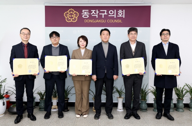 결산검사 위원은 총 6명으로 동작구의회 신민희 의원(책임위원), 김효숙 의원과 외부위원으로 고영호·김훈찬·김재국·황진홍 세무사가 위촉됐으며, 이날 위촉식에서는 정재천 의장으로부터 위촉장을 수여받고 결산검사 방향에 관한 의견을 교환하는 시간을 가졌다.