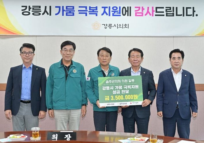 울주군의회는 2일 강릉시의회를 방문, 강릉시 가뭄 피해 성금 300만원을 기탁하고 가뭄 위기 극복을 기원했다.