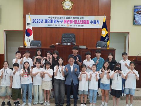 부산광역시 영도구의회는 지난 7월 26일 ‘제3대 영도구 어린이·청소년의회’ 수료식을 개최했다고 밝혔다.