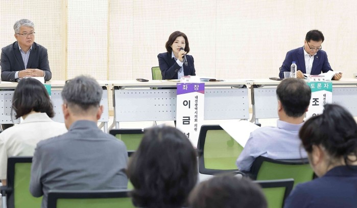 이날 정책간담회는 이금선 의원이 좌장을 맡고 조원휘 대전시의회 의장,이원희 대전시 자원순환과 시설조성팀장, 김주연 유성구 보건소장, 김성동 유성구 마을자치과 마을공동체팀장이 토론자로 참석했다.