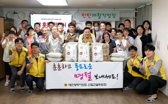 대전시의회 송인석 산업건설위원장(국민의힘, 동구1)은 추석 명절을 앞둔 25일 동구 소재 장애인 재활시설 탄탄재활작업장(원장 이미정)을 방문해 위문품을 전달했다.
