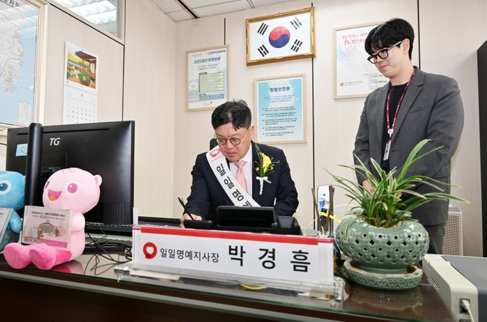 명예지사에 위촉된 박경흠 의장은 주요 현안과 업무를 보고받고 민원실에서 간단한 민원 업무를 처리하는 등 건강보험제도와 공단 현안을 직접 체험했다.