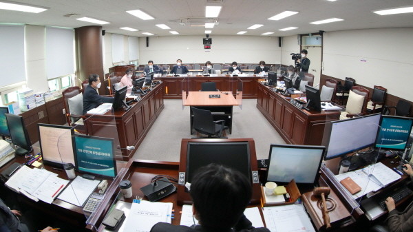| ▲ 지난 18일 의회 제2상임위실에서 열린 ‘안산시의회 의원연구단체 운영심의위원회’의 모습. 이날 회의에서는 지난 1년 동안 연구활동을 벌인 의회 의원연구단체 5곳에 대한 심사가 이뤄졌으며, 5곳 모두 심사를 통과했다. |