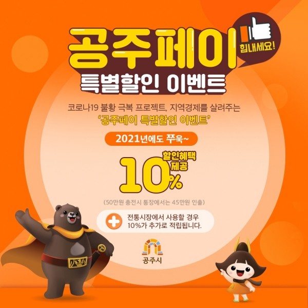 김정섭 시장은 “전통시장과 상가 등 침체된 상권의 소비촉진을 위해 공주페이 할인율을 10%로 유지하기로 했다”며 “상반기 중 공공배달앱과 온라인쇼핑몰을 출시해 수수료 부담도 덜어드릴 계획이다”고 말했다.
