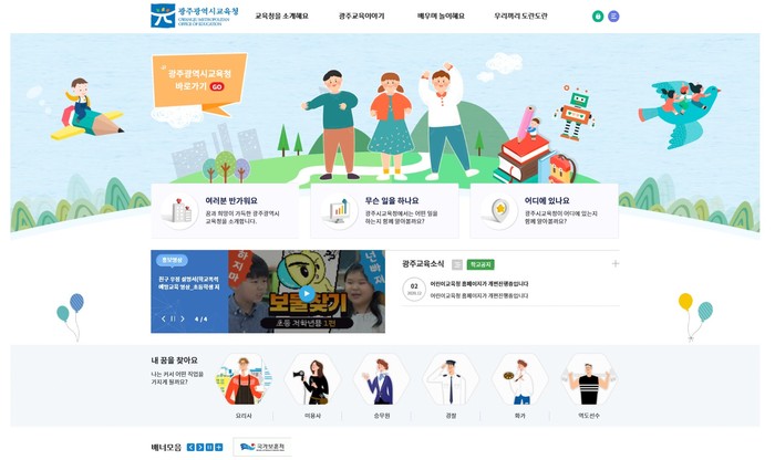 7일 광주시교육청에 따르면 기존 시교육청 홈페이지는 어린이들이 이용하기에는 복잡해 아이들의 눈높이에 맞춘 ‘어린이 홈페이지’ 신설 작업을 추진했다. ‘어린이 홈페이지’는 유치원생 및 초등학생들이 친근하게 이용할 수 있는 메뉴와 디자인으로 이뤄진다.