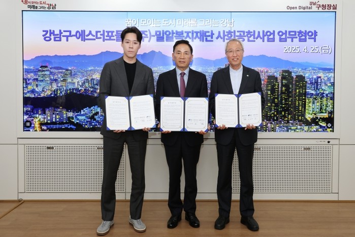 꿈이 모이는 도시, 미래를 그리는 강남구가 4월 25일, 에스더포뮬러㈜, 밀알복지재단과 3자 업무협약을 체결하고 사회적고립 1인가구를 위한 민·관 협력 복지사업을 추진한다.
