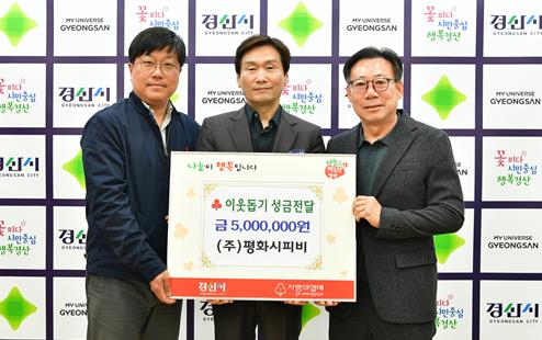 | ▲ 경산시 (주)평화시피비, 이웃돕기 성금 500만원 기탁 |