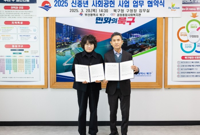 부산 북구는 지난 20일, 공창종합사회복지관과 일자리 창출로 사회적 가치를 실현하는 '신중년 사회공헌사업'의 추진을 위한 업무협약을 체결했다.