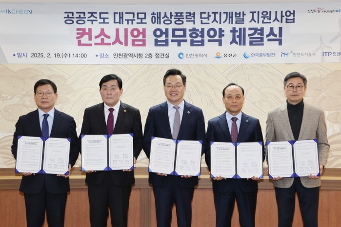 옹진군은 지난 19일, 인천광역시청에서 인천시·한국중부발전·인천도시공사·인천테크노파크와 ‘공공주도 대규모 해상풍력 단지개발 지원사업 컨소시엄 업무협약’을 체결했다고 밝혔다.