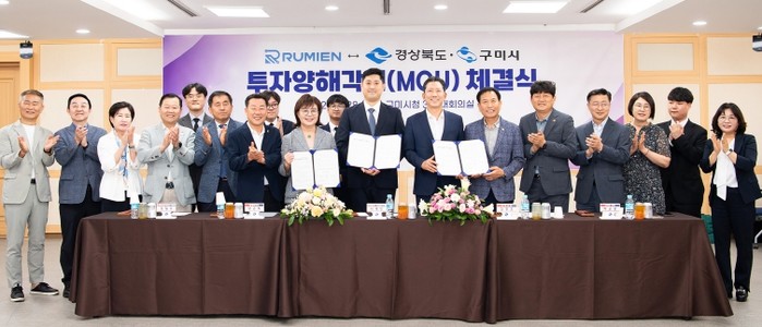 경상북도와 구미시는 28일 구미시청 3층 대회의실에서 양금희 경상북도 경제부지사, 김장호 구미시장, 박교상 구미시의회 의장, 서태민 루미엔㈜ 총괄부사장, 도의원 등이 참석한 가운데 루미엔㈜와 경상북도·구미시 간 투자양해각서(MOU)를 체결했다.