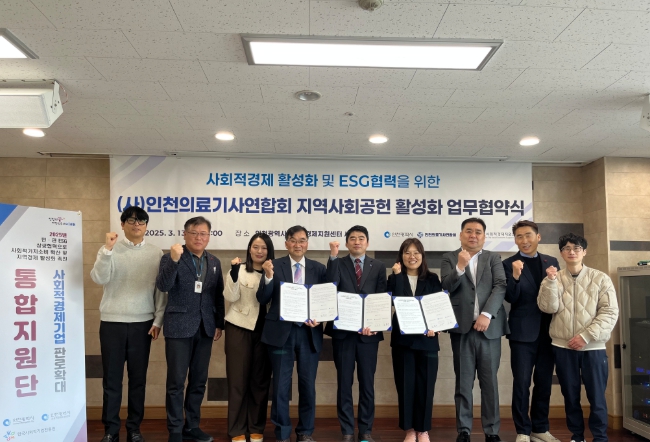 인천광역시는 3월 13일 (사)인천의료기사연합회, 사회적경제지원센터와 함께 사회적경제기업의 민간구매 판로 확대를 위한 업무협약을 체결했다고 밝혔다.