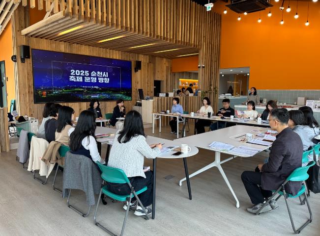 순천시는 지난 25일 축제 운영 부서 간 연계·협력을 통해 축제 효과를 극대화할 수 있는 방안을 논의하고자 ‘순천시 축제추진단 1차 회의’를 정원워케이션 센터에서 개최했다고 밝혔다.