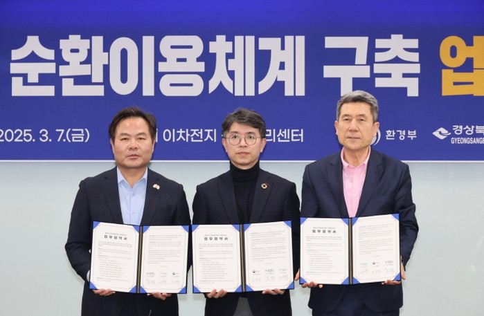 이날 협약에서 포항시와 환경부, 경북도는 배터리 순환이용 산업을 국가 핵심 녹색산업으로 육성하기 위해 상호협력을 강화키로 했다.