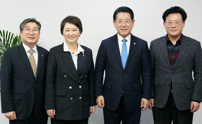 김영록 전라남도지사는 12일 이언주 더불어민주당 최고위원을 만나 솔라시도 AI 슈퍼클러스터 허브 구축을 위한 메가 샌드박스 벨트 구상을 제안하고 국립의과대학 설립 등 도정 주요 현안사업에 협조를 구했다.