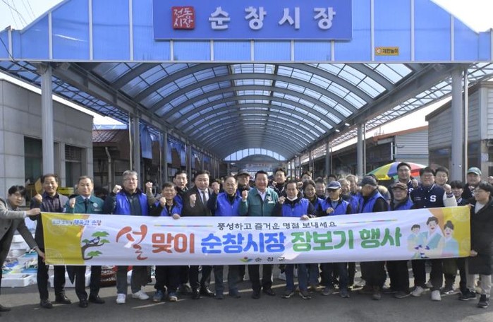 순창군은 21일 설 명절을 앞두고 경기 침체로 어려움을 겪고 있는 전통시장에 활력을 불어넣기 위해‘설맞이 장보기 행사’와‘물가안정 홍보 캠페인’을 개최했다.