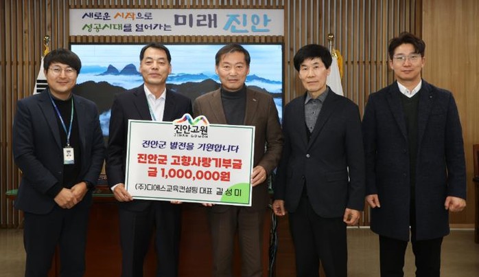 19일 진안군에 따르면 (유)성원엘리베이터 양해정 대표가 5백만원, ㈜JNY 김양선 대표, 농업회사법인 참좋은마을㈜ 이원석 대표, ㈜디에스교육컨설팅 길성미 대표, 진안읍 출신 백형문 향우가 각각 고향사랑기부금 1백만원씩을 전달했다.