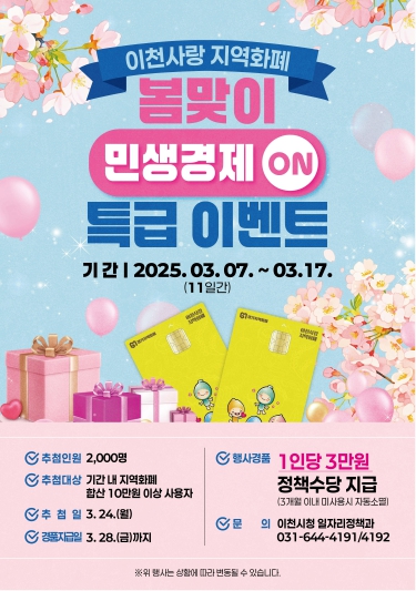 | ▲ 이천시, 봄맞이 민생경제 온(ON)! 이천사랑 지역화폐 특급이벤트 |