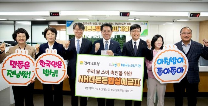 김영록 지사는 “‘NH더든든밥심예금Ⅱ’ 가입을 통해 쌀 소비 부진으로 어려움을 겪는 농가에 조금이나마 힘이 되길 바란다”며 “많은 분이 밥심예금 가입을 통해 아침밥 먹기, 우리쌀 먹기 운동에 적극 동참하길 바란다”고 말했다.