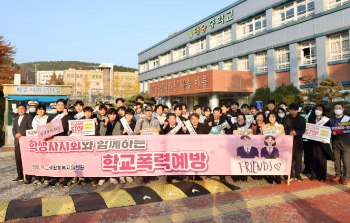 울산 강북교육지원청은 26일 오전 8시 동구 대송중학교 정문에서 ‘학교폭력 예방 홍보활동’을 펼쳤다.