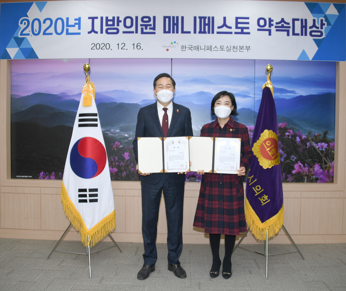 | ▲2020 지방의원 매니페스토 약속대상 수상(광주시의회 제공) |