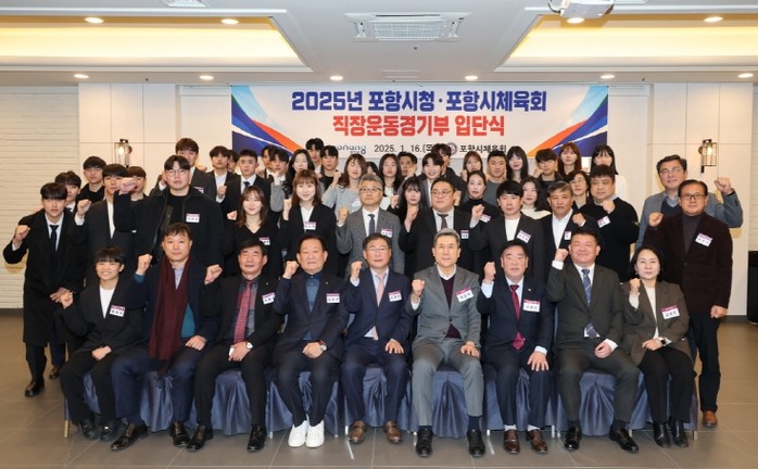 포항시와 포항시체육회는 16일 티파니웨딩에서 ‘2025년 포항시 직장운동경기부 입단식’을 개최했다.