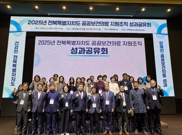 전북특별자치도는 6일 전주 그랜드힐스턴호텔에서 공공보건의료지원단과 공공보건의료 수행기관 관계자 100여 명이 참석한 가운데 ‘2025년 전북특별자치도 공공보건의료 지원조직 성과공유회’를 개최했다.