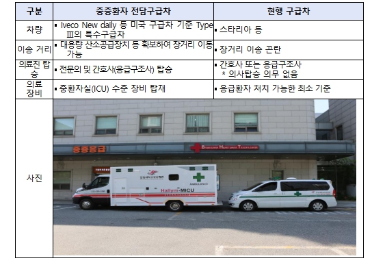 | ▲ 일반 구급차와 중증환자 전담구급차 비교 |