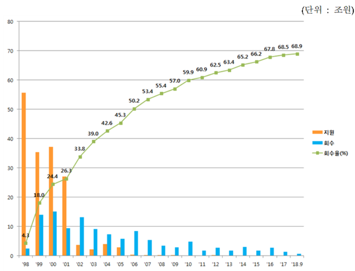 IMF 이후 투입된 168조7천억원 중 116조1천억원 회수